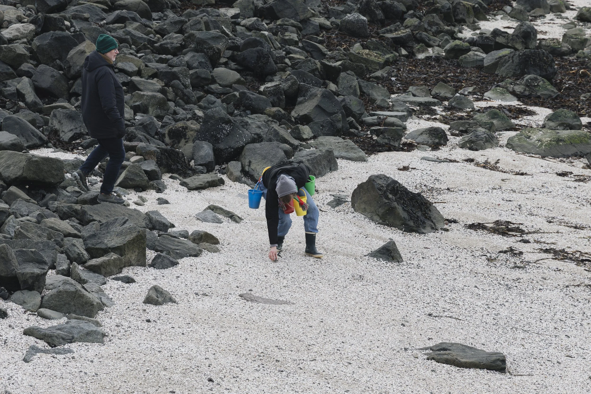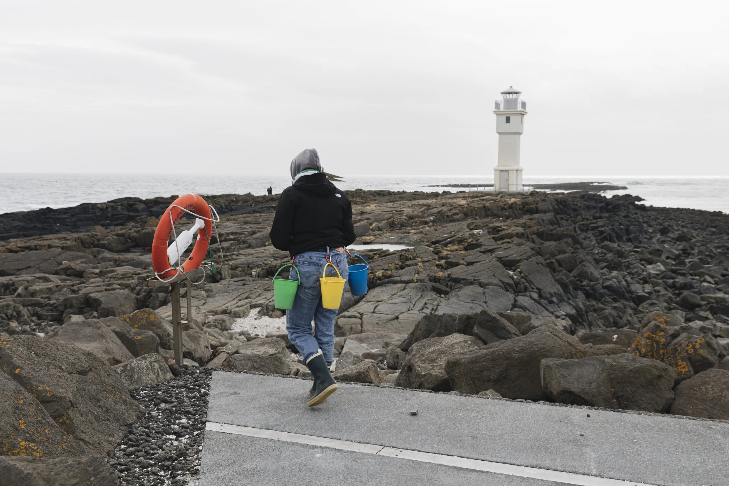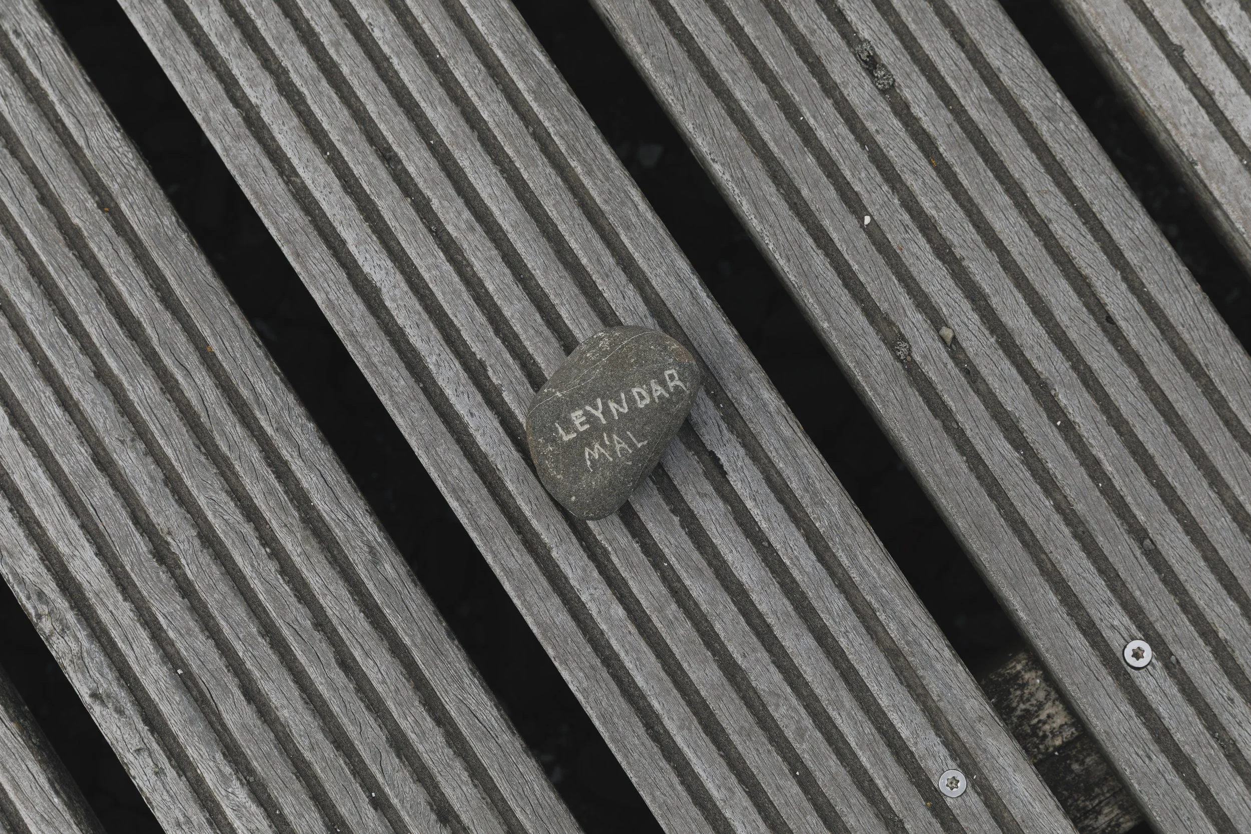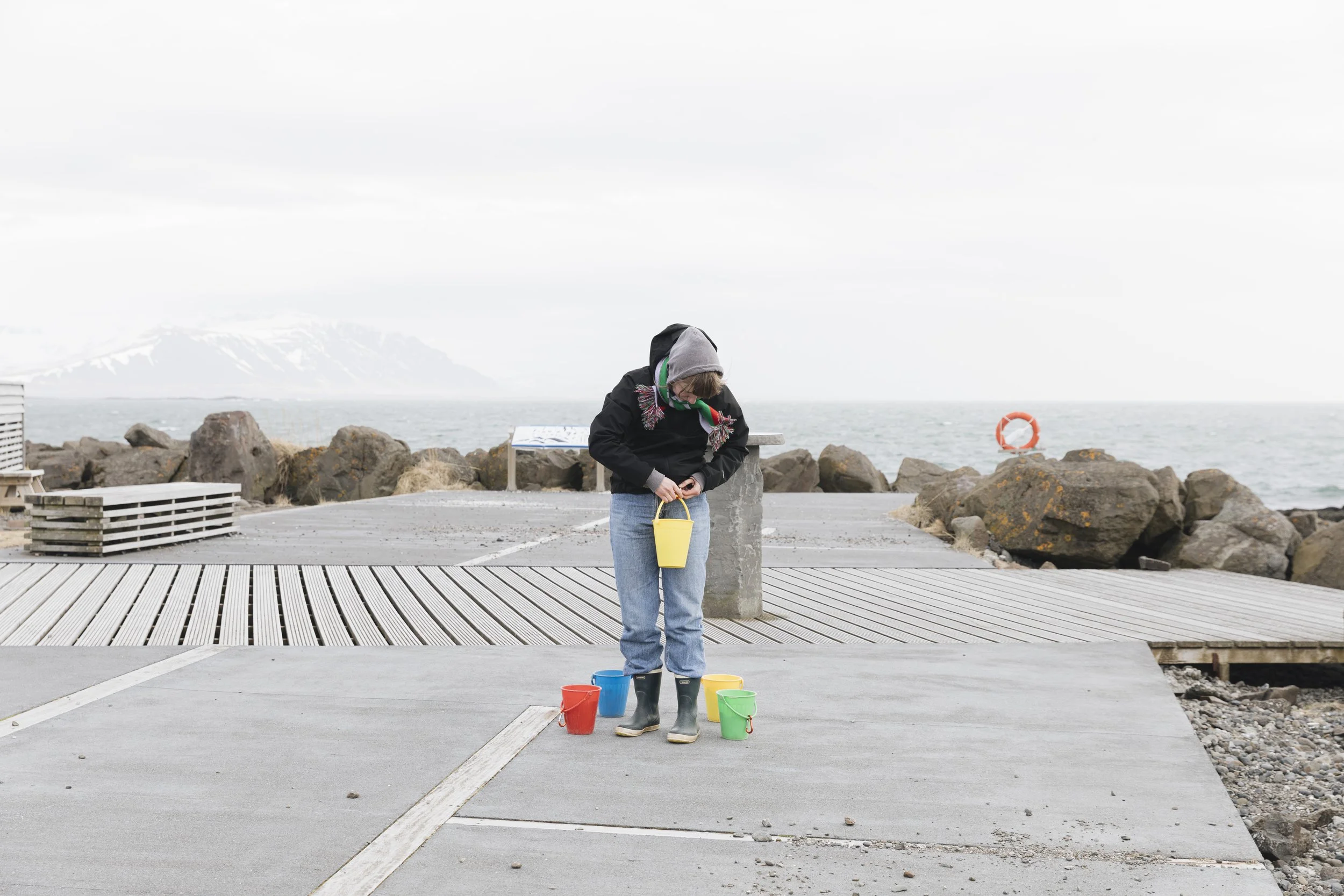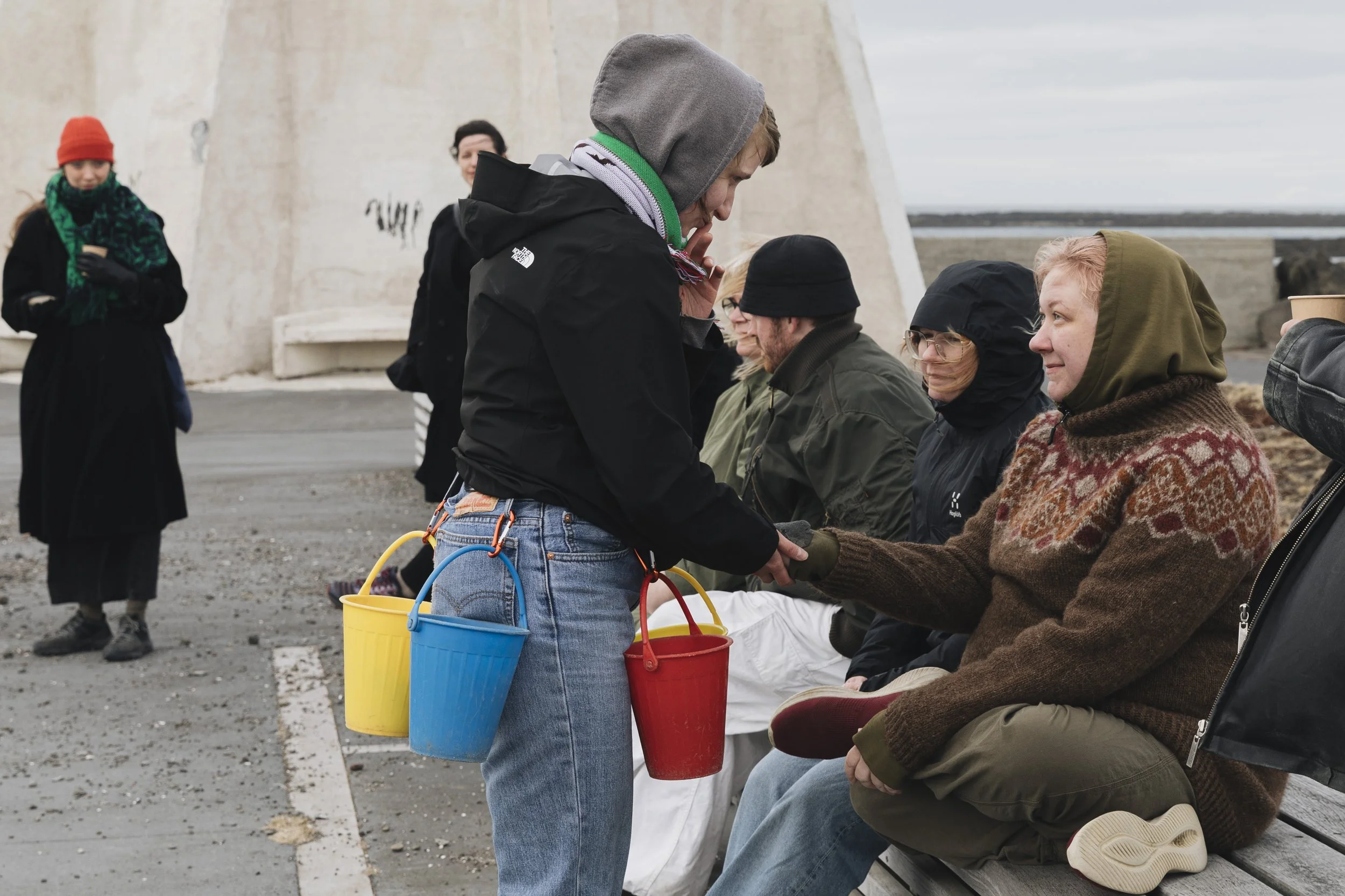 Steinasafnari safnar leyndarmálasteinum í plastfötur. Hún leggur slóð leyndarmála, gefur gestum leyndarmál, leiðir þau út í fjöru að sjó. Þar kastar hún leyndarmálunum út í sjó. Leyndarmál skrifuð í stein gefin og kastað á sæ.